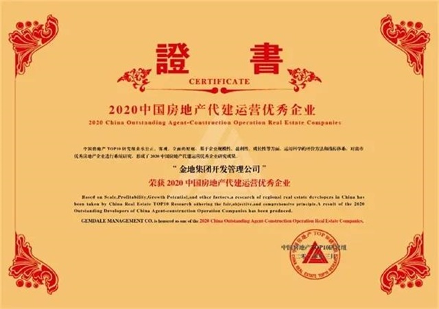 2个月前的2020年3月16日,观点指数研究院正式发布的“2020中国房地产卓越100报告”中,金地集团荣登“2020中国房地产代建管理卓越榜TOP10”,这代表了行业内对于金地管理的认可。