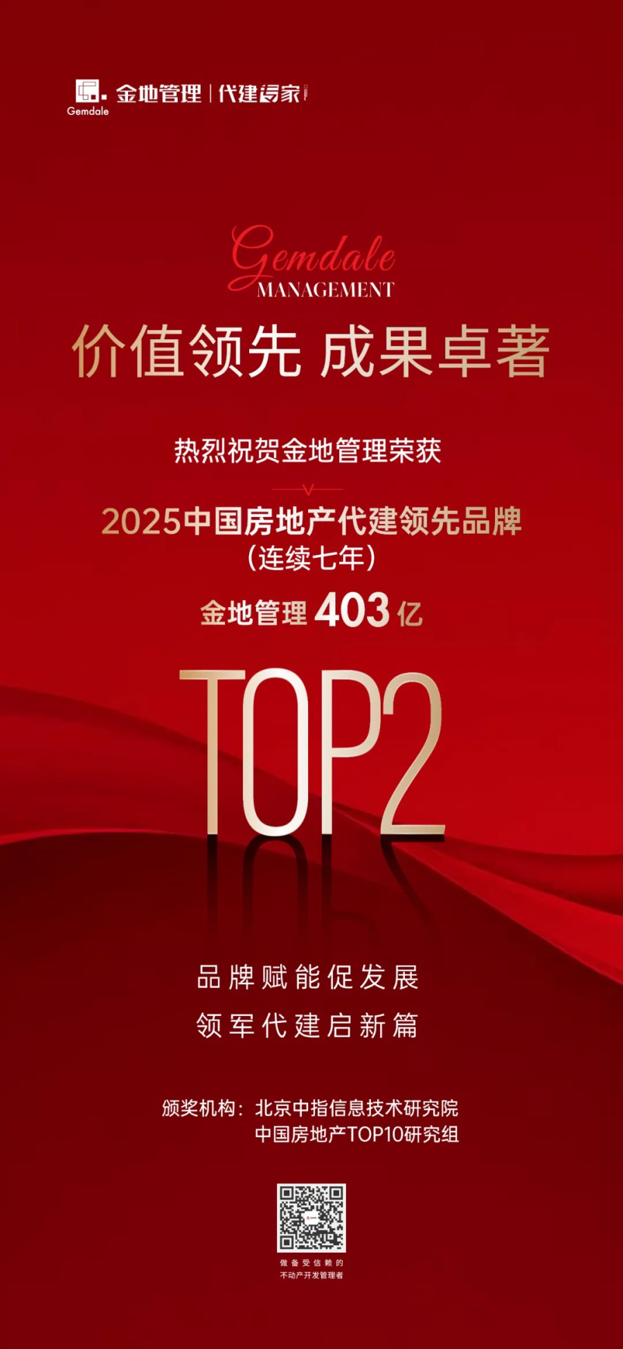 ◎金地管理荣获“2025中国房地产代建领先品牌”TOP2