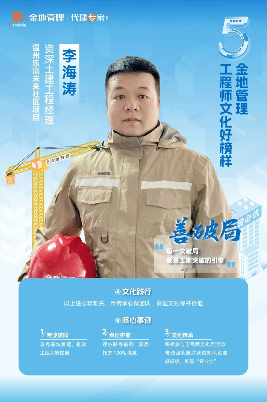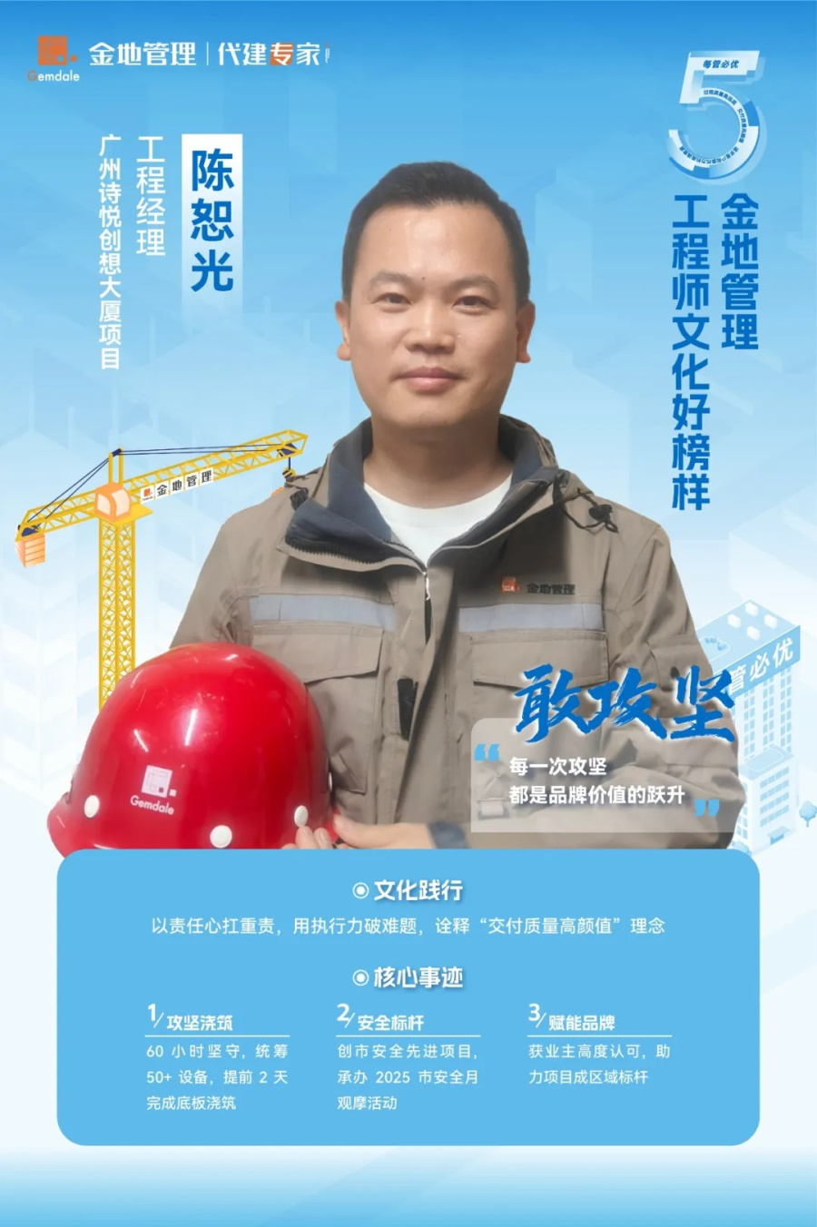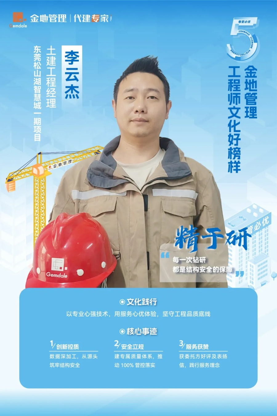 在工程师文化月期间,我们精心评选出了5位工程师文化好榜样。他们深刻理解代建工程师的使命,不仅日夜奋战在工作岗位上,更不忽视每一个细微之处,以满腔热忱提供有温度的服务。这五位榜样始终如一地践行并传承着工程师文化,他们的实际行动深深感染了团队同事与合作伙伴,共同弘扬了工程师文化的精髓。